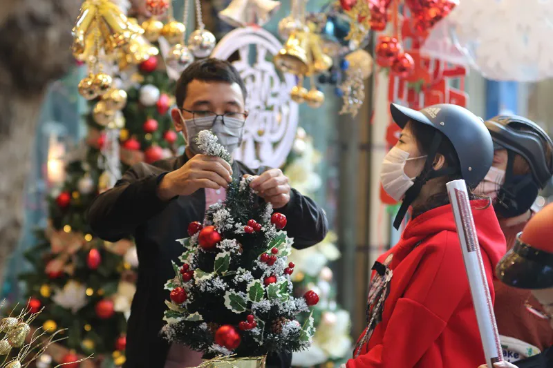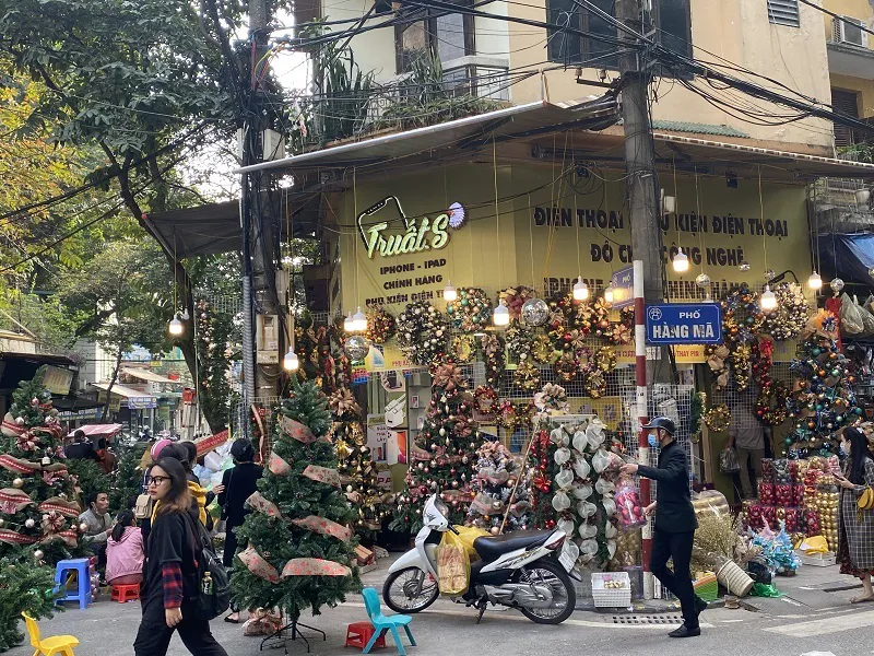 Christmas is in the air, especially at Hang Ma street where traders are selling toys and decorations for the season. |