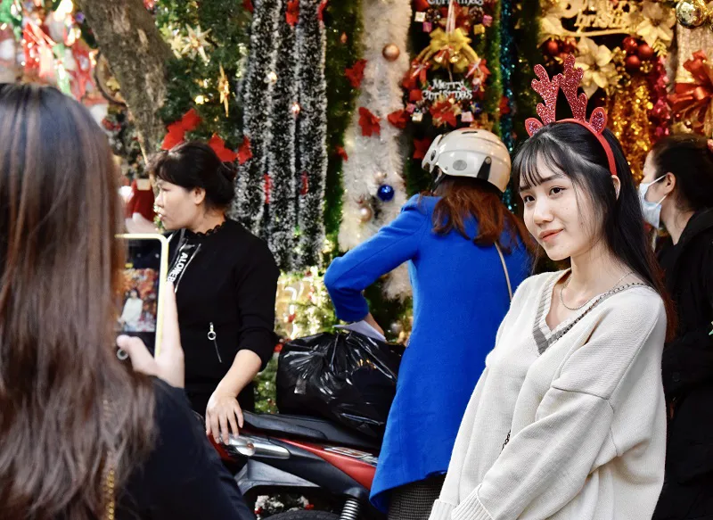 Hang Ma street in Hanoi’s Old Quarter, filled with colorful decorations has become a snapshot venue for Hanoi’s youngsters in the days ahead of Christmas.