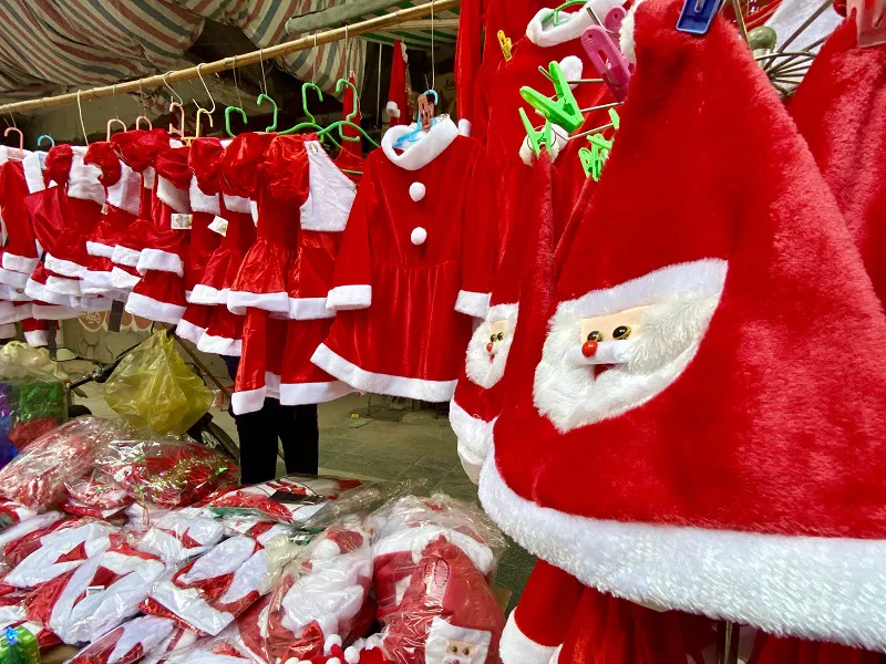Santa Claus outfits are one of the most popular items sold at the stores. A suit for children is being sold at VND150,000 (US$6.5) to VND300,000 (US$13), depending on size. |