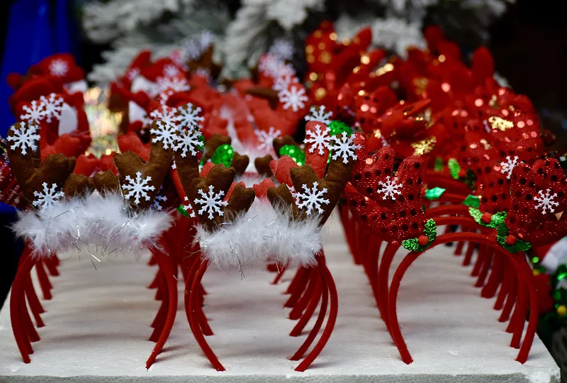 Items sold in Hang Ma street changed according to festive season. The hottest sales for the moment are Santa Claus figurines, bells, reindeer, among others. |