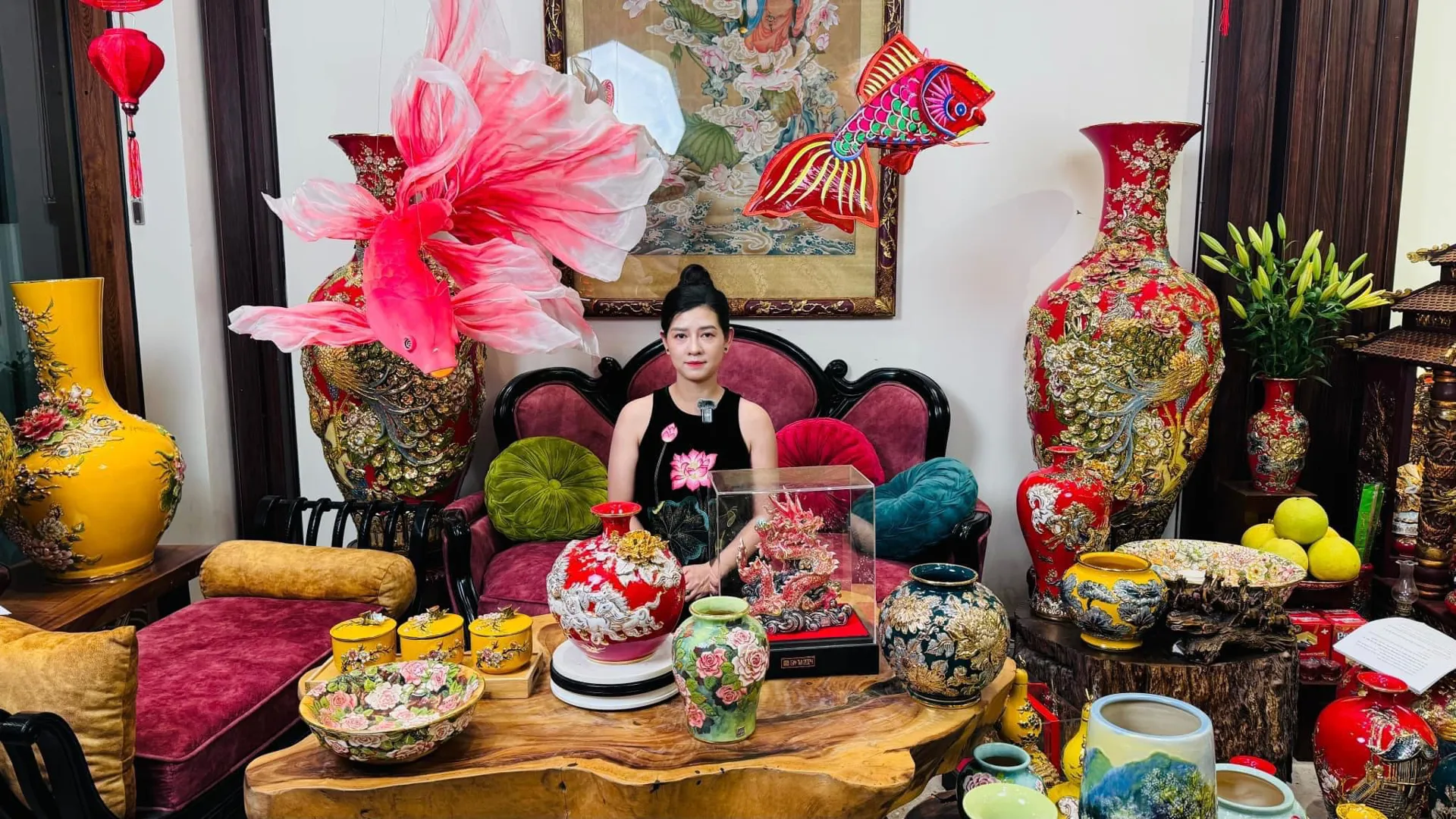 Thanks to technology, Vu Nhu Quynh's evolving ceramic designs now reach both domestic and international markets, featuring high-end spiritual items with gold-plated finishes and luxurious home decor pieces.