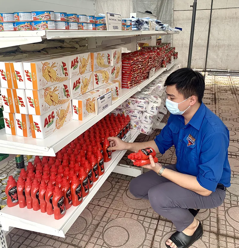 The mini supermarket sells more than 60 essential items, including sugar, milk, rice, eggs, cooking oil, fish sauce, soy sauce, instant noodles, fish, vegetables, fruits, among others. |
