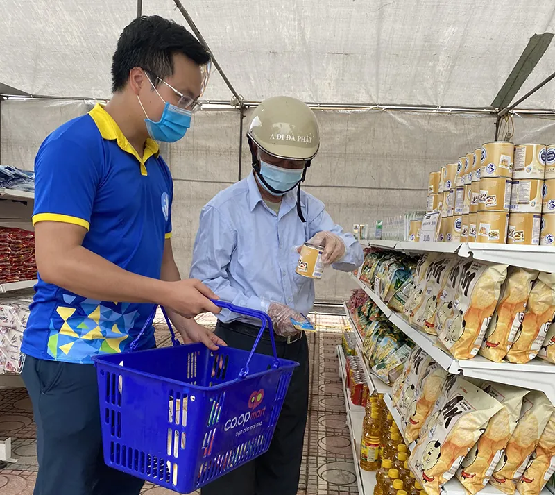 Via the local authority, households affected by the Covid-19 pandemic will receive a gift voucher worth VND400,000 (US$17.2) each. Each household is assigned a shopping time to ensure that there are not too many people at the place at the same time.
